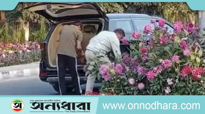 এরই মধ্যে সামাজিক যোগাযোগ মাধ্যমে ছড়িয়ে পড়েছে সে ঘটনার একটি ভিডিও। সেখানে দেখা যায়, জি- ২০ সম্মেলন উপলক্ষে পথের দু’ধারে রাখা টবসহ কয়েকটি ফুলগাছ নিজের দামি গাড়িতে তুলে নিচ্ছেন এক ব্যক্তি। দূর থেকে পুরো কাণ্ড মোবাইল ফোনে ভিডিও করেন এক প্রত্যক্ষদর্শী। পরে ভিডিওটি টুইটারে পোস্ট করে দেন।