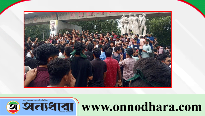 সোমবার (১২ আগস্ট) বিকেল সাড়ে ৪টায় ঢাকা বিশ্ববিদ্যালয়ের রাজু ভাস্কর্যের পাদদেশে জড়ো হন শিক্ষার্থীরা। এর আগে শিক্ষার্থীরা বিভিন্ন হল থেকে ছোট ছোট মিছিল নিয়ে আসেন।