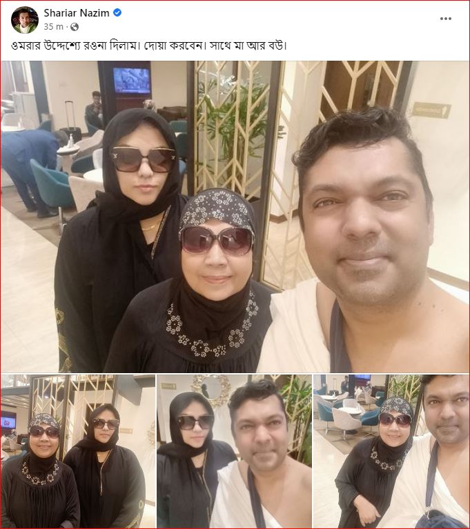 বৃহস্পতিবার সকাল সাড়ে টার দিকে ভেরিফায়েড ফেসবুক অ্যাকাউন্ট থেকে কয়েকটি ছবি পোস্ট করে এ তথ্য নিজেই জানিয়েছেন তিনি। অভিনেতা তার মা ও স্ত্রীর সঙ্গে পোস্ট করা সেই ছবির ক্যাপশনে লেখেন, ‘ওমরাহর উদ্দেশে রওনা দিলাম। দোয়া করবেন। সঙ্গে মা আর বউ।’